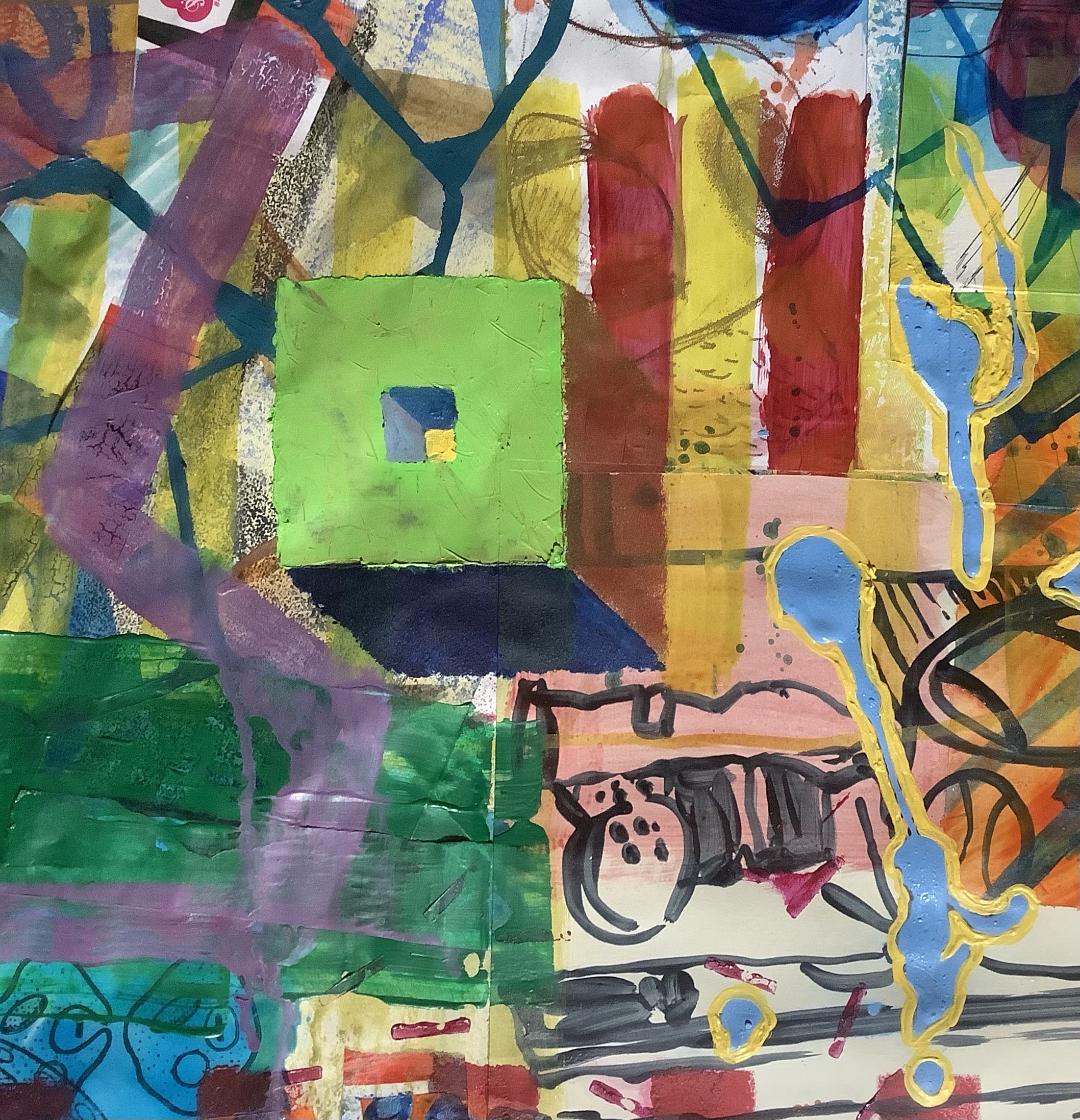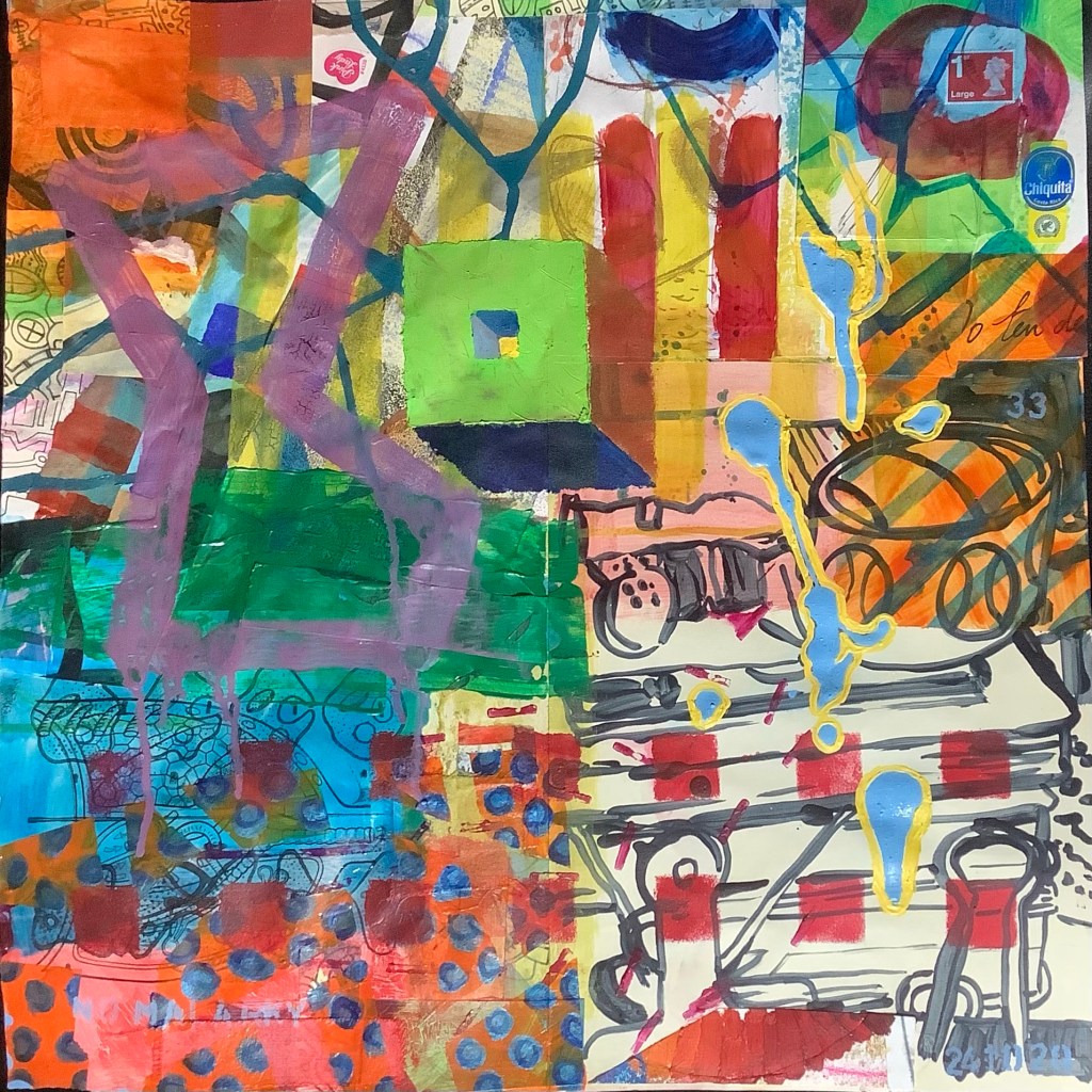 Mixed media on collaged paper patchwork. 46cm x 46cm approx. Culmination of the Abstract Advent project instigated by @artpedagogy on Instagram.