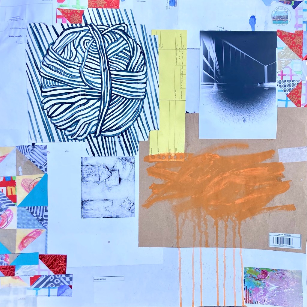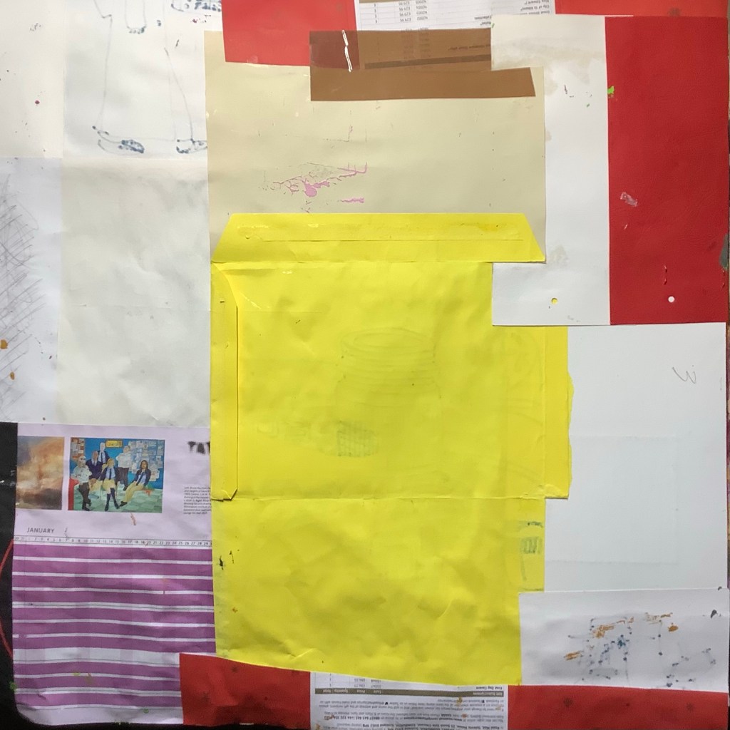 Acrylic paint on collaged paper patchwork 48cm x 48cm