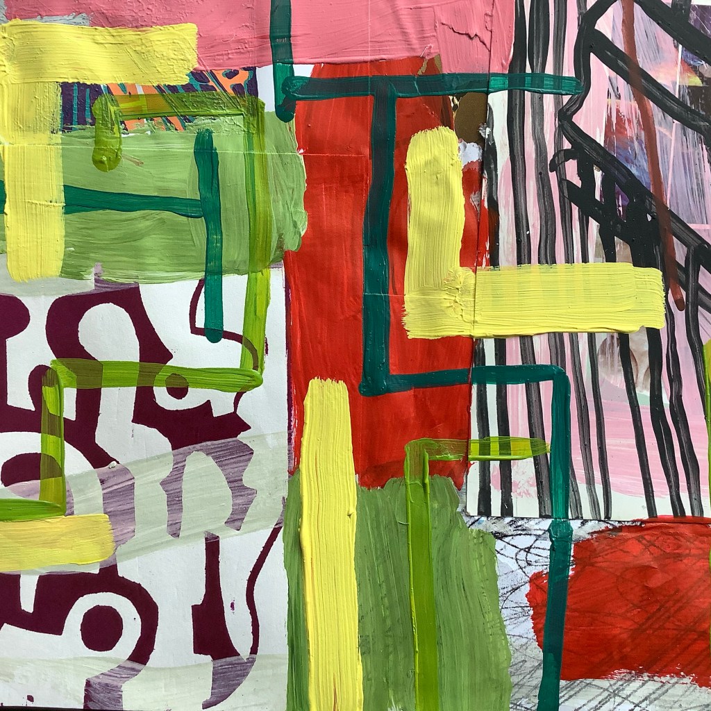 Acrylic paint on collaged paper patchwork 48cm x 48cm
