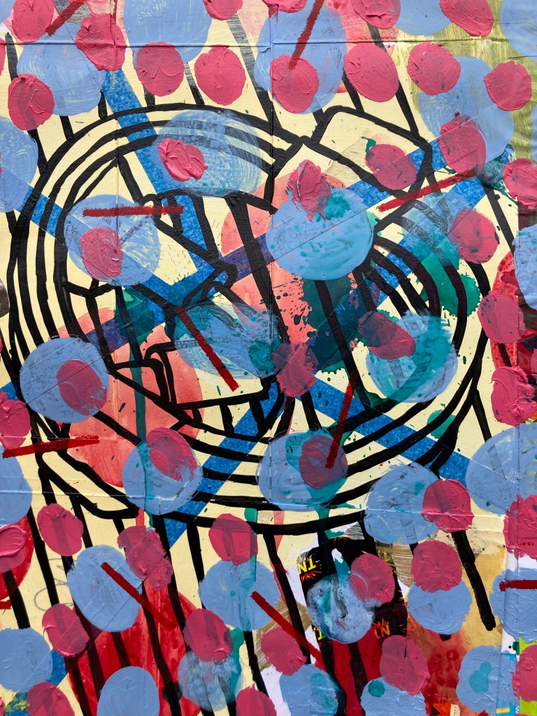 Acrylic paint on collaged paper patchwork 48cm x 48cm